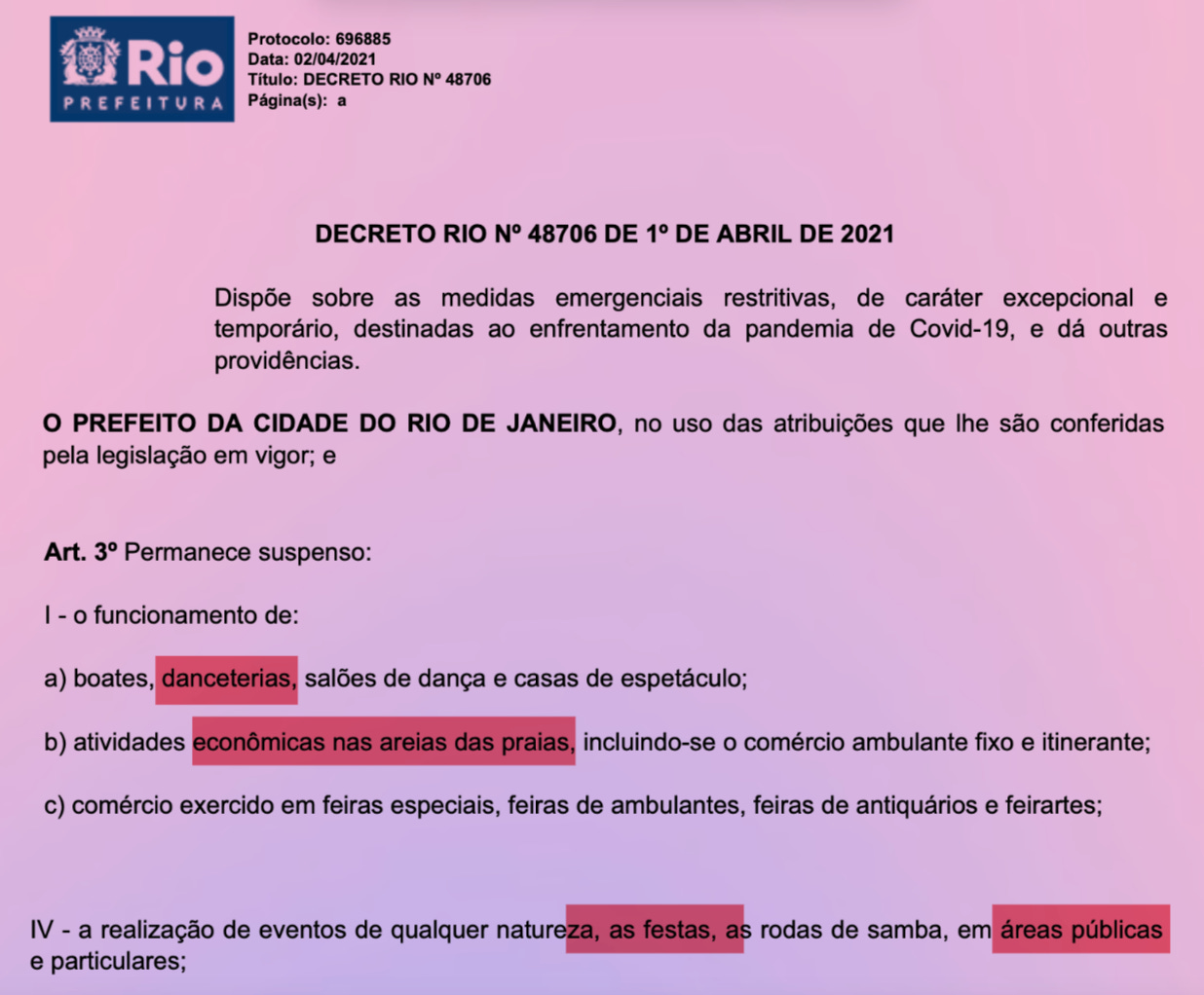 Un an plus tard, le Brésil est en pleine hécatombe. Mars 2021 est le mois le plus meurtrier de la pandémie dans le pays : plus de 66 000 morts en trente jours. À Rio, les mesures sanitaires sont toujours en vigueur : couvre-feu, fermeture des bars, interdiction des rassemblements.