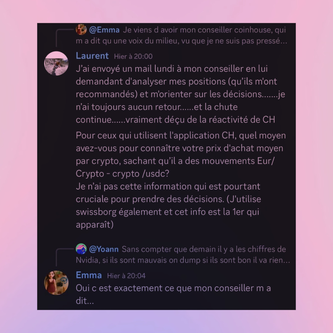 Mais quelques temps après, plusieurs membres se sont plaints des conseils de Coinhouse, surtout en cette période très mouvementée pour les cryptos, avec une allocation particulièrement risquée.
