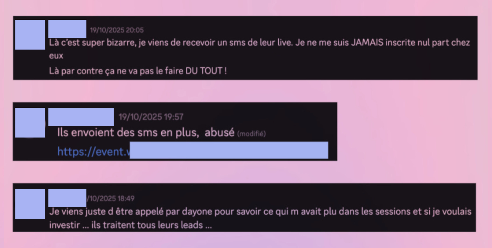 Vous mettez en avant des commentaires privés sur un discord d un club d investisseur privé (Dayone) dont les miens. Je vous demande expressément de floutter les photos et les noms des commentaires que vous avez mis dans votre article