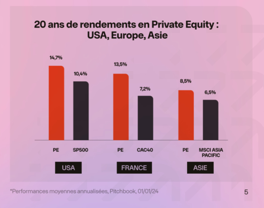 Parce que sur la liste précédente, j’ai « oublié » de mettre le 3e drop : « Investir dans les meilleures entreprises du marché à partir de 100€ » avec le traditionnel rendement bullshit du private equity qui oublie, outre le fait que les performances passées ne présagent pas bla-bla-bla, que ces stats sont une moyenne qui incluent les gros fonds instits, alors que les retails (coucou les FCPI) ont des performances souvent proches de l’inflation, pour des risques très élevés.