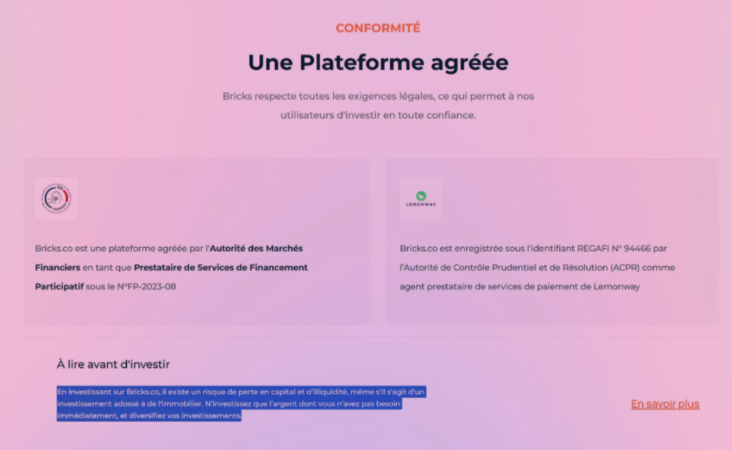 Mais aussi en faisant complĂštement disparaĂźtre les risques. MĂȘme aujourd'hui. MĂȘme aprĂšs tout ça. MĂȘme dans ce contexte, on trouve encore des plateformes qui omettent sciemment les risques, ou les planquent trĂšs loin des yeux des investisseurs.