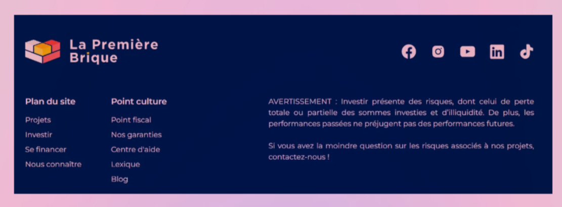 Pareil chez La PremiĂšre Brique, qui colle tout dans le footer