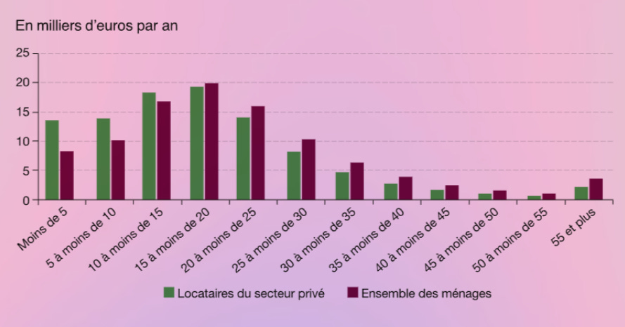 En France, les locataires sont surreprésentés dans les classes populaires et moyennes basses, alors que le nombre de locataires tend à baisser.