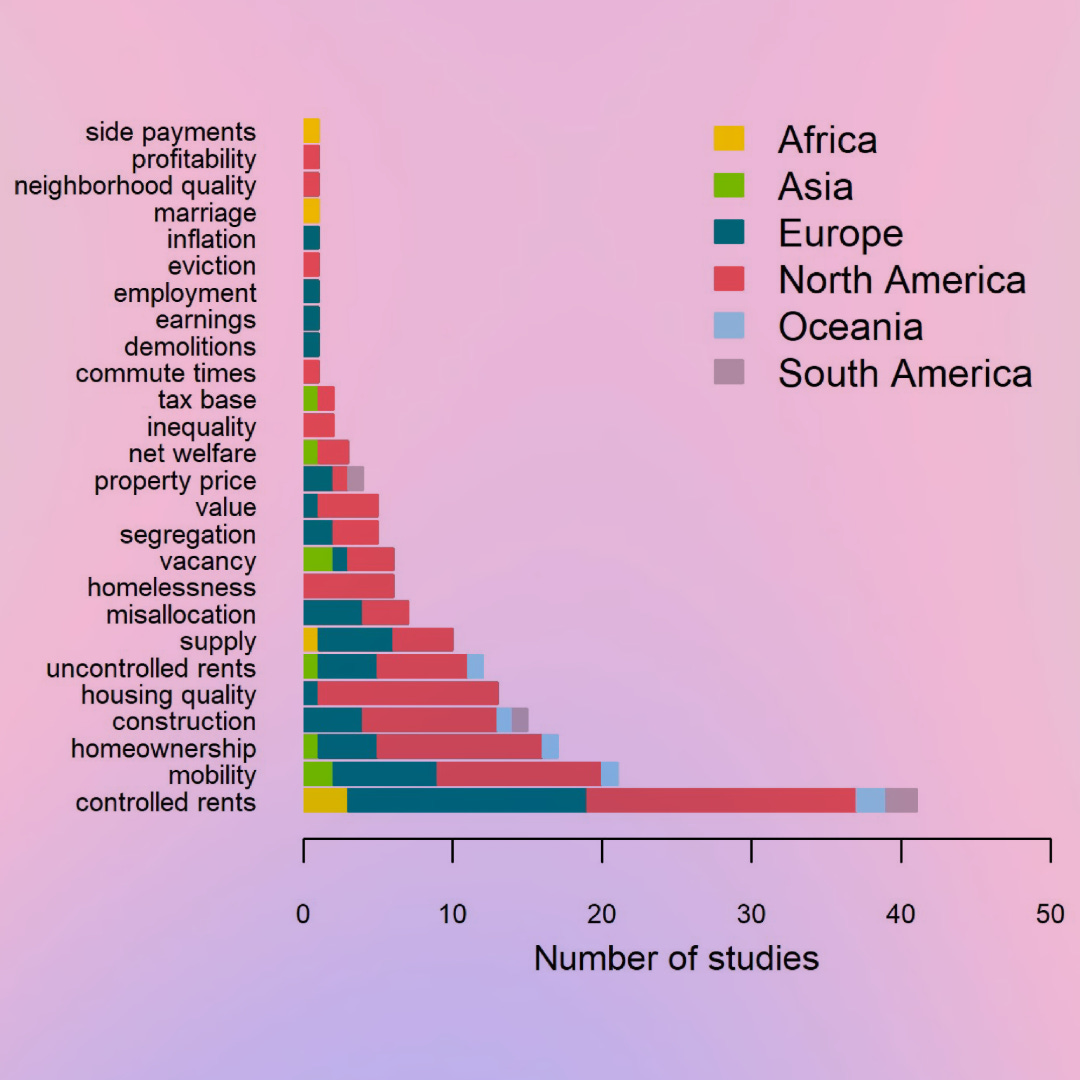Nombre d’études par effets potentiels du contrôle des loyers15