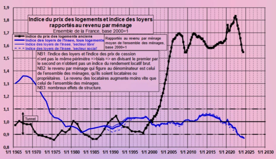 En France, la fameuse courbe de Friggit a montré à quel point les prix de l’immobilier ont explosé, au point de se décorréler complètement des revenus.