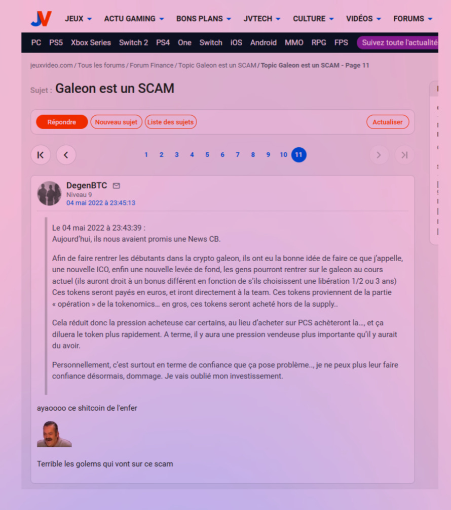 Galeon est un SCAM, JeuxVideo.com, 1er mars 2022 – forum public, 8+ pages