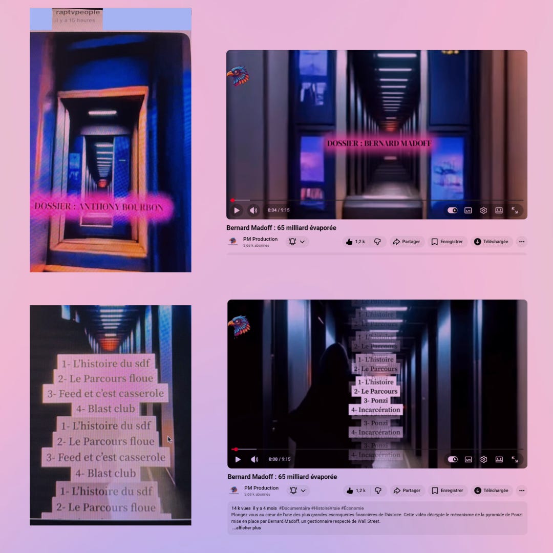 Comparaison entre les propositions de raptvpeople à Benotmane (à gauche) et leur application dans la première vidéo sur Madoff (à droite).