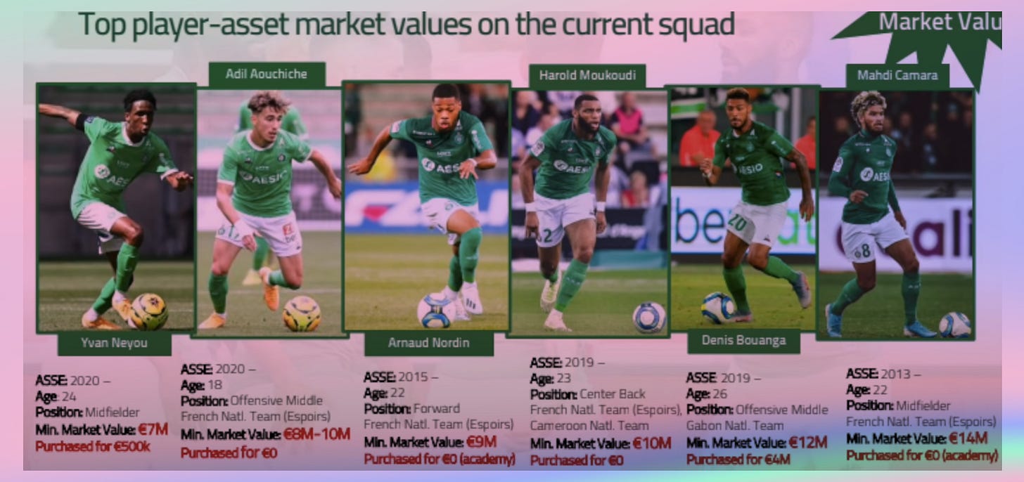 Mais pour valoriser le club, et faire en sorte de le faire passer pour une pĂ©pite, le duo prĂ©pare une prezâ valorisant⊠les joueurs. Plusieurs slides sont consacrĂ©es aux jeunes, et surtout aux plus-values potentielles.