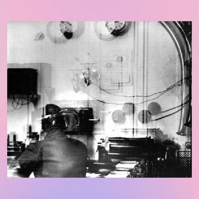 Été 1895. Guglielmo Marconi expérimente les ondes récemment découvertes par Heinrich Hertz (le mec de l’électricité, pas des voitures). En bidouillant des trucs et des machins (un cohéreur de Branly et une antenne), il crée la première liaison télégraphique sans fil de 2.4km.
