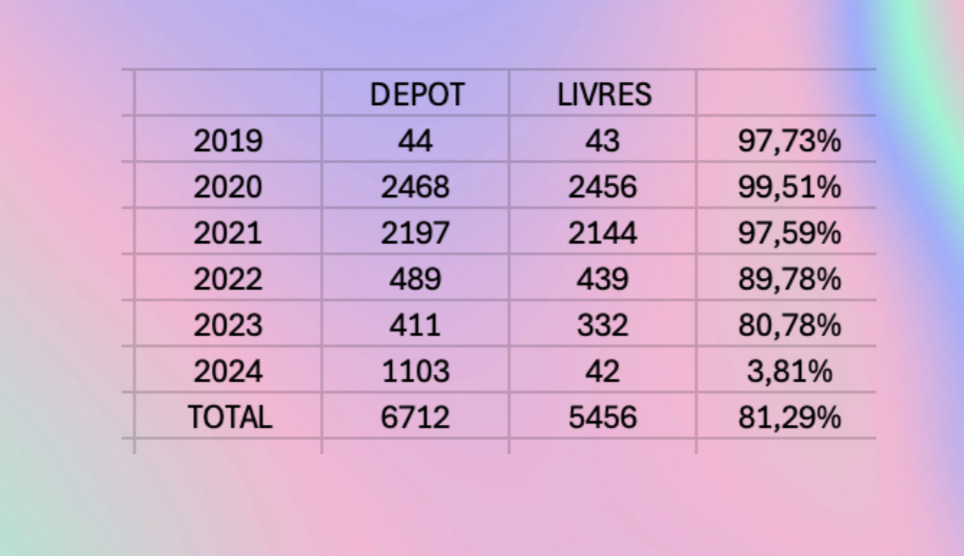 Si on constate que certains dossiers de plusieurs annĂ©es nâont jamais Ă©tĂ© rĂ©gularisĂ©s, en 2024 câest carrĂ©ment abyssal. Seulement 42 fiches sur 1â103 dĂ©pĂŽts sont accessibles.