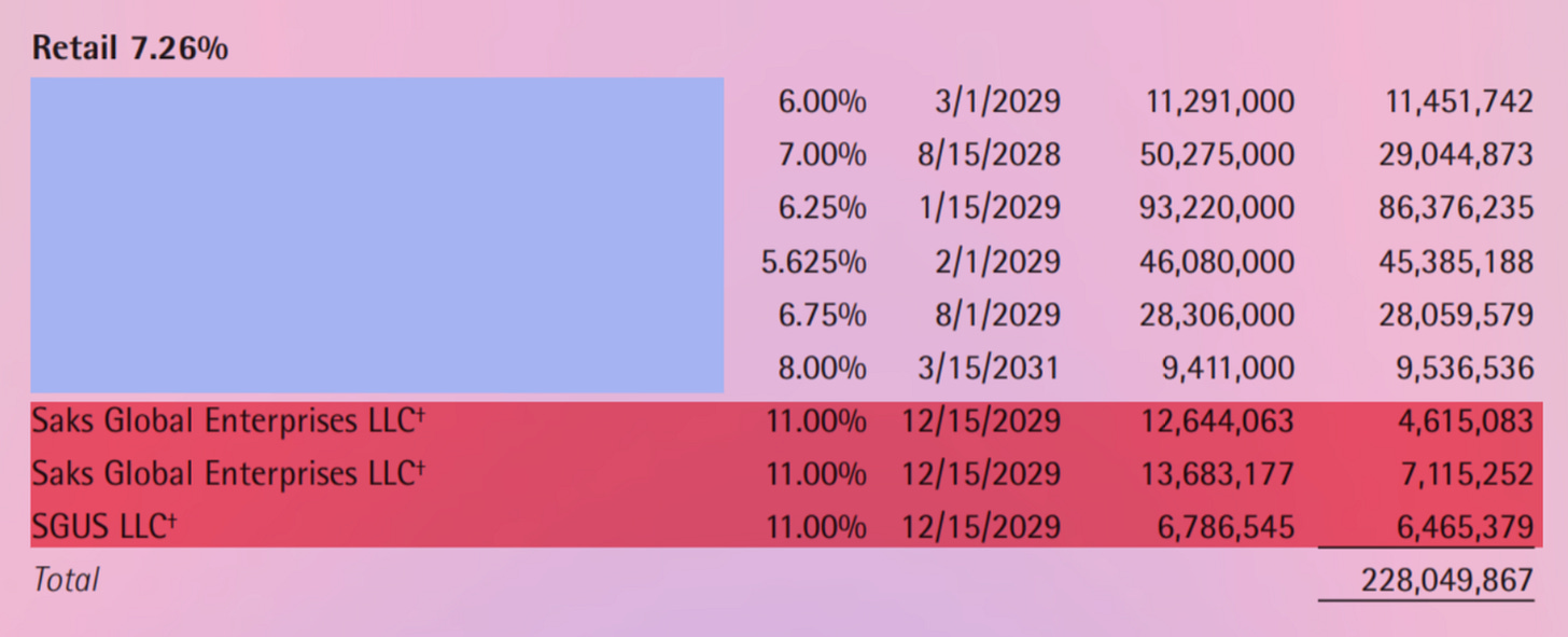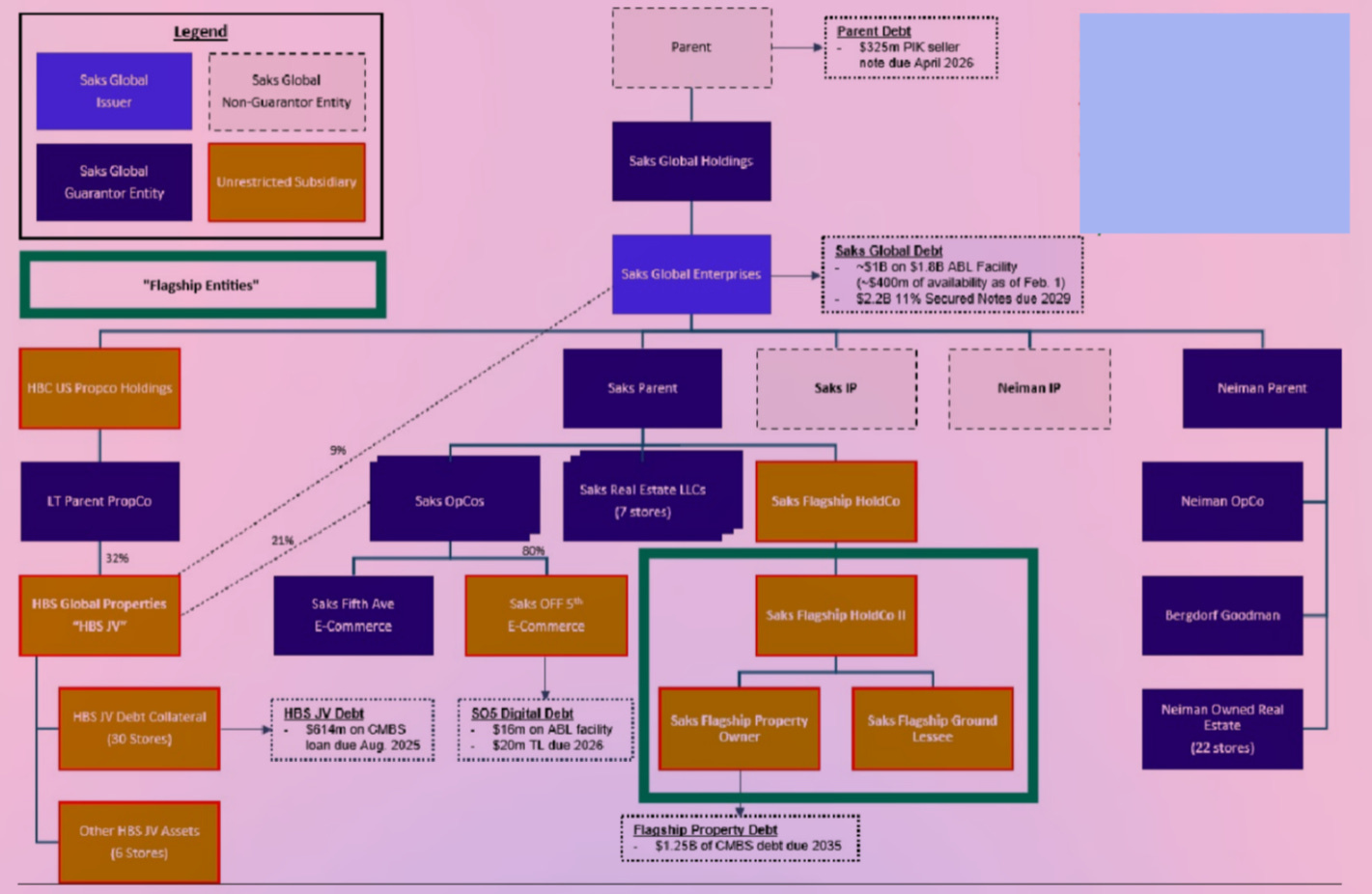 Au total, Saks Global porte environ 3,4G$ de dette structurée en couches. Chaque couche a ses propres garanties, ses propres échéances, ses propres créanciers. Et quand ça commence à vaciller, chacun tire dans son coin.