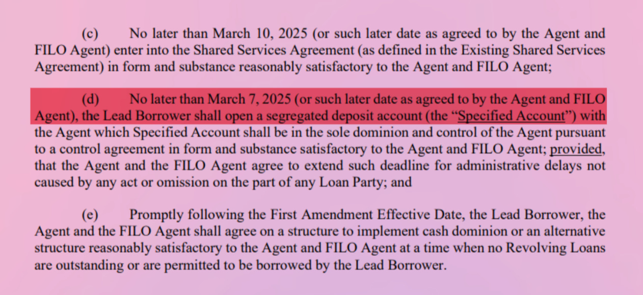 Mais l’étau se resserre en décembre. Même scénario qu’au Canada six mois plus tôt : Bank of America relève trois fois le seuil de liquidité minimum en deux semaines, puis déclenche le contrôle total des comptes bancaires. La recette est connue. Et fin décembre, 126M$ d’intérêts à payer. Six mois plus tôt, Saks avait levé 600M$ pour payer ceux de juillet. Cette fois, plus personne pour remettre au pot.