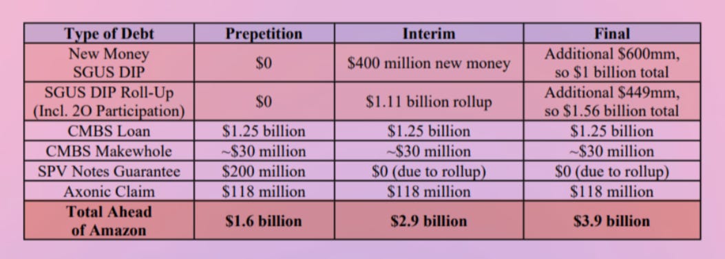 Les investisseurs minoritaires : Amazon (475M$ ), Salesforce, Authentic Brands Group, Rhone, Insight Partners, Abu Dhabi Investment Council, G-III Apparel Group. Ces noms servent d’écran de crédibilité. Ils donnent au montage une façade respectable pendant que la dette fait le vrai travail.