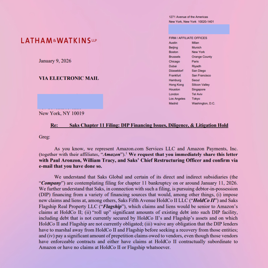 « A $900M Promise to Amazon and 4 Other Takeaways From the Saks Bankruptcy », WWD, 15 janvier 2026
