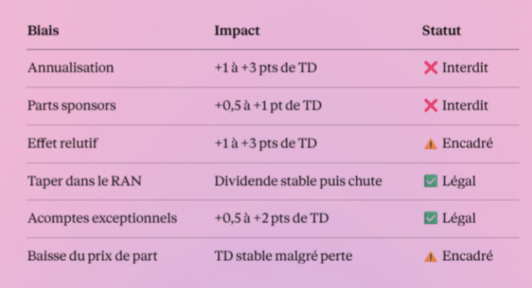 D’un côté, 4-5% de TD et des associés bloqués pour des années. De l’autre, 7-8% et des revalorisations de prix. Pas le même produit.