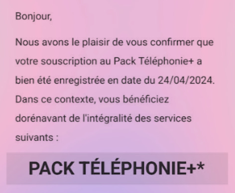 Alors que SFAM vient d’être liquidée, elle reçoit un appel lui disant que « suite à son achat à la Fnac », elle peut bénéficier du Pack Téléphonie+ « gratuitement et sans adhésion » parce que ce sont des offres qu’elle « aurait dû avoir ».