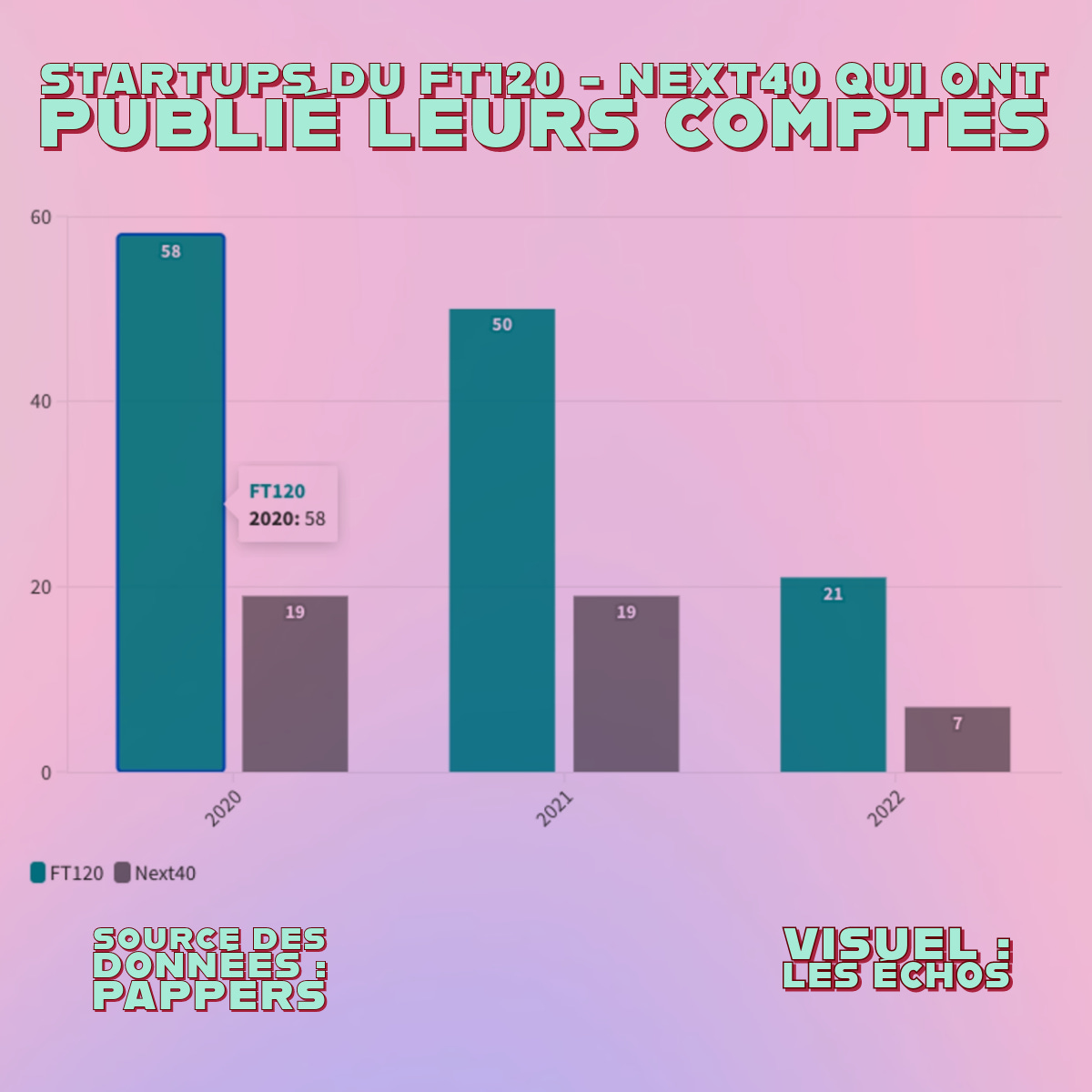 L’article des Échos est une sorte de use case de l’API Pappers sur les 160 startups des Next40 / FT120. Pappers a extrait les données sur 2020, 2021 et 2022, et les résultats sont étonnants (ou pas) sur les entreprises qui ont publié leurs comptes :