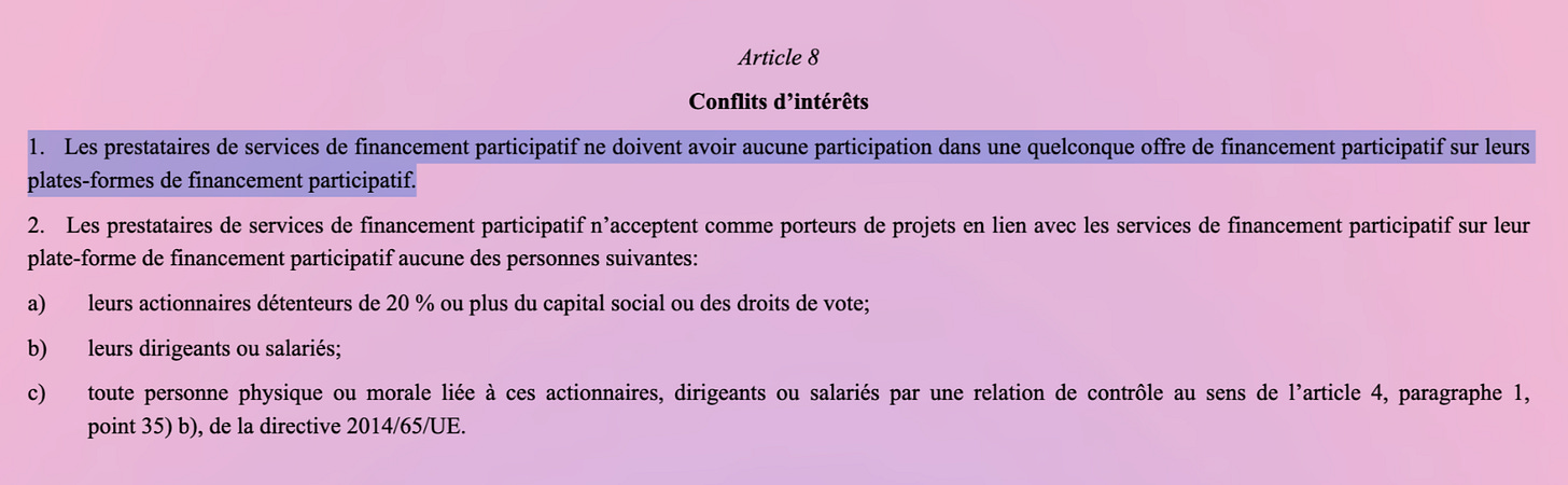 De manière directe ou indirecte, j’ai également été amené à travailler contre rémunération pour plusieurs acteurs du crowdfunding ou du crowdequity, y compris certains cités en introduction.